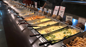 Cardápio variado com pizzas, massas, carnes, camarões, peixes e petiscos